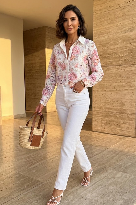The Bettina Floral Lace Crop Shirt