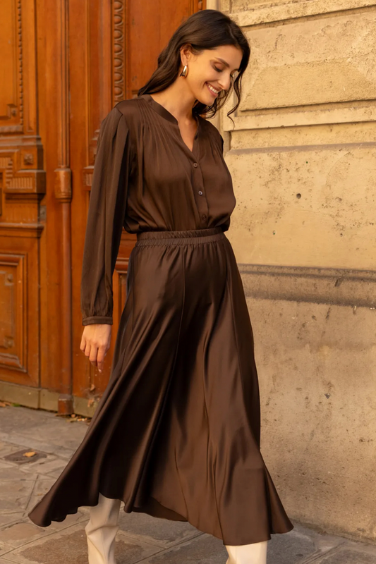 Chocolate Bias Cut Satin Skirt