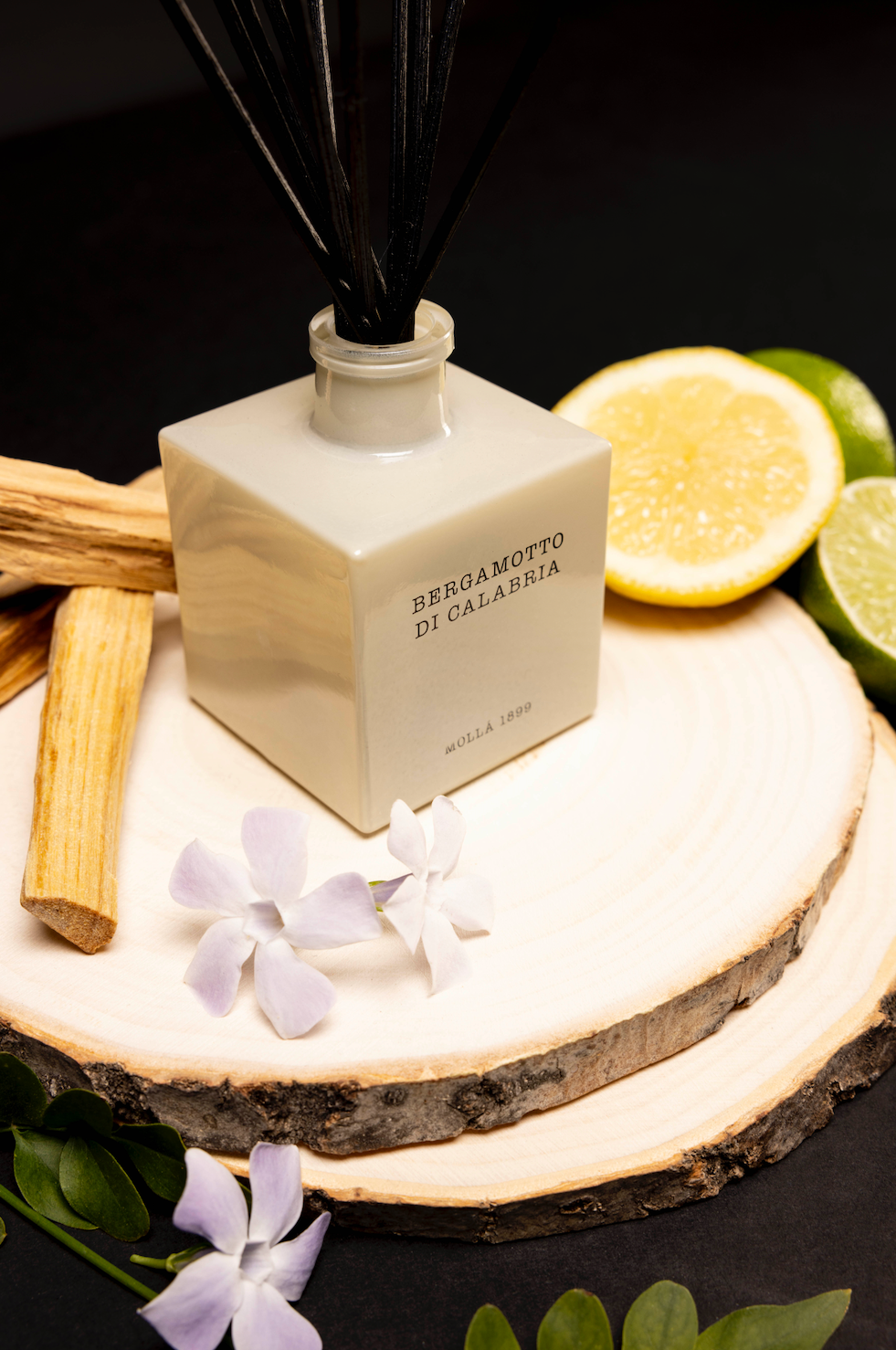 Bergamotto's aroma brings us to the island of Calabria. Its slightly fruity nuances and its fusion with the warmth of sandalwood, cardamom and lime make it a fresh, energizing and stimulating fragrance that invites you to feel the Mediterranean breeze.