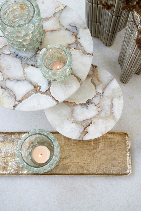 Elevate your tablescape this festive season with our 'Layo/ white marble and bronze décor stands. The perfect addition to your living space.