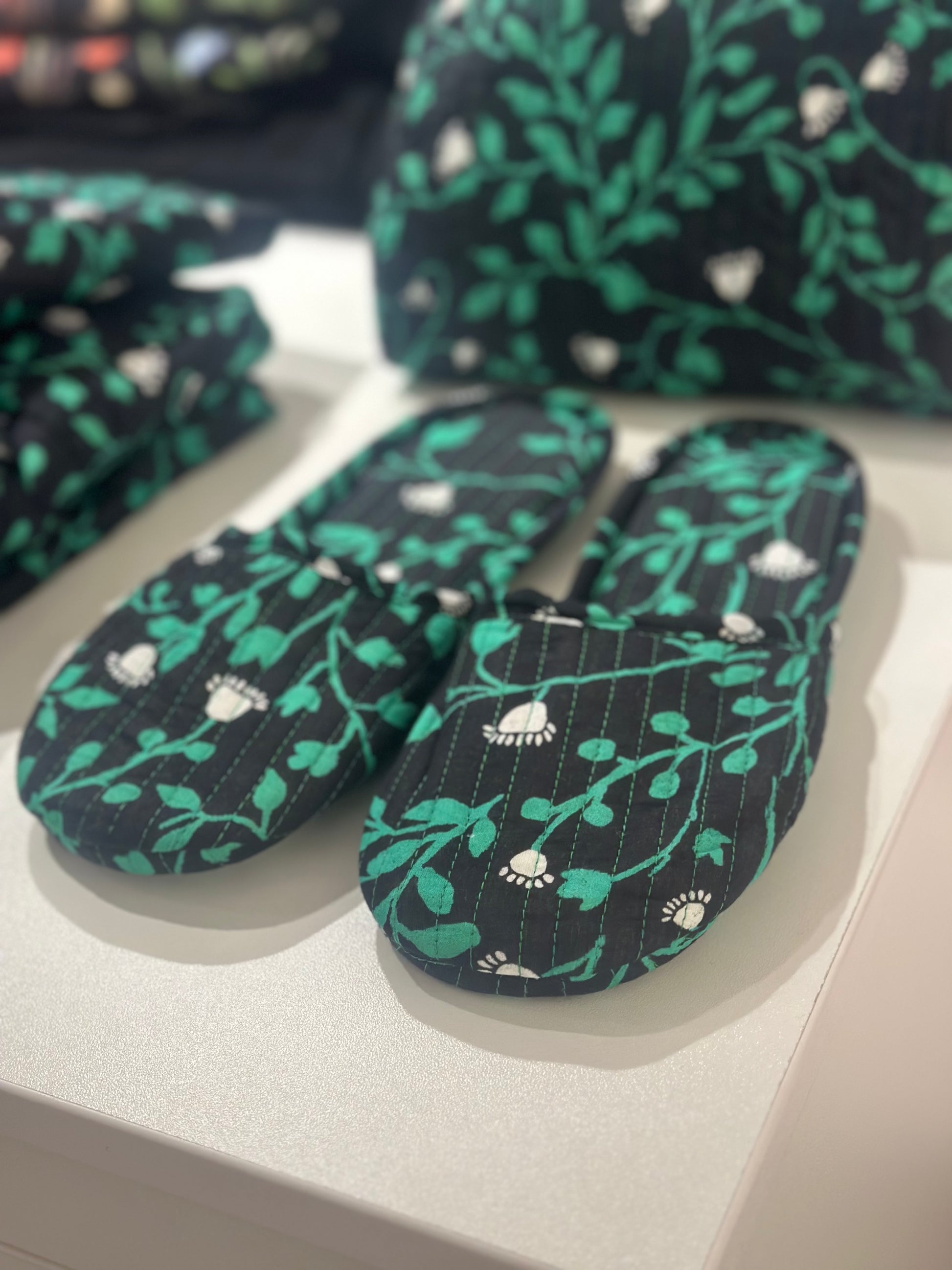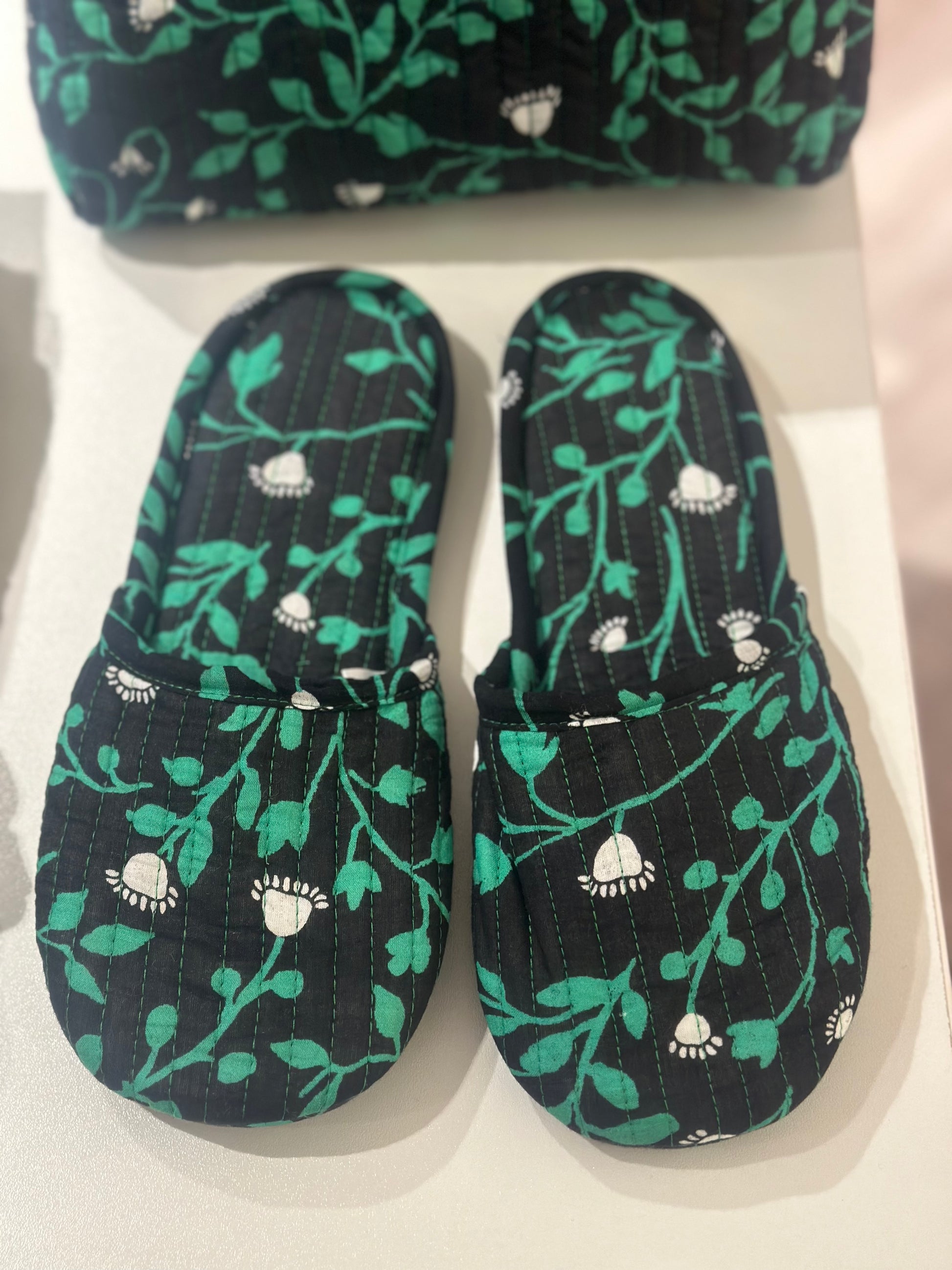 Trendy and stylish printed casual slipper in our Lily of the Valley printed cotton.