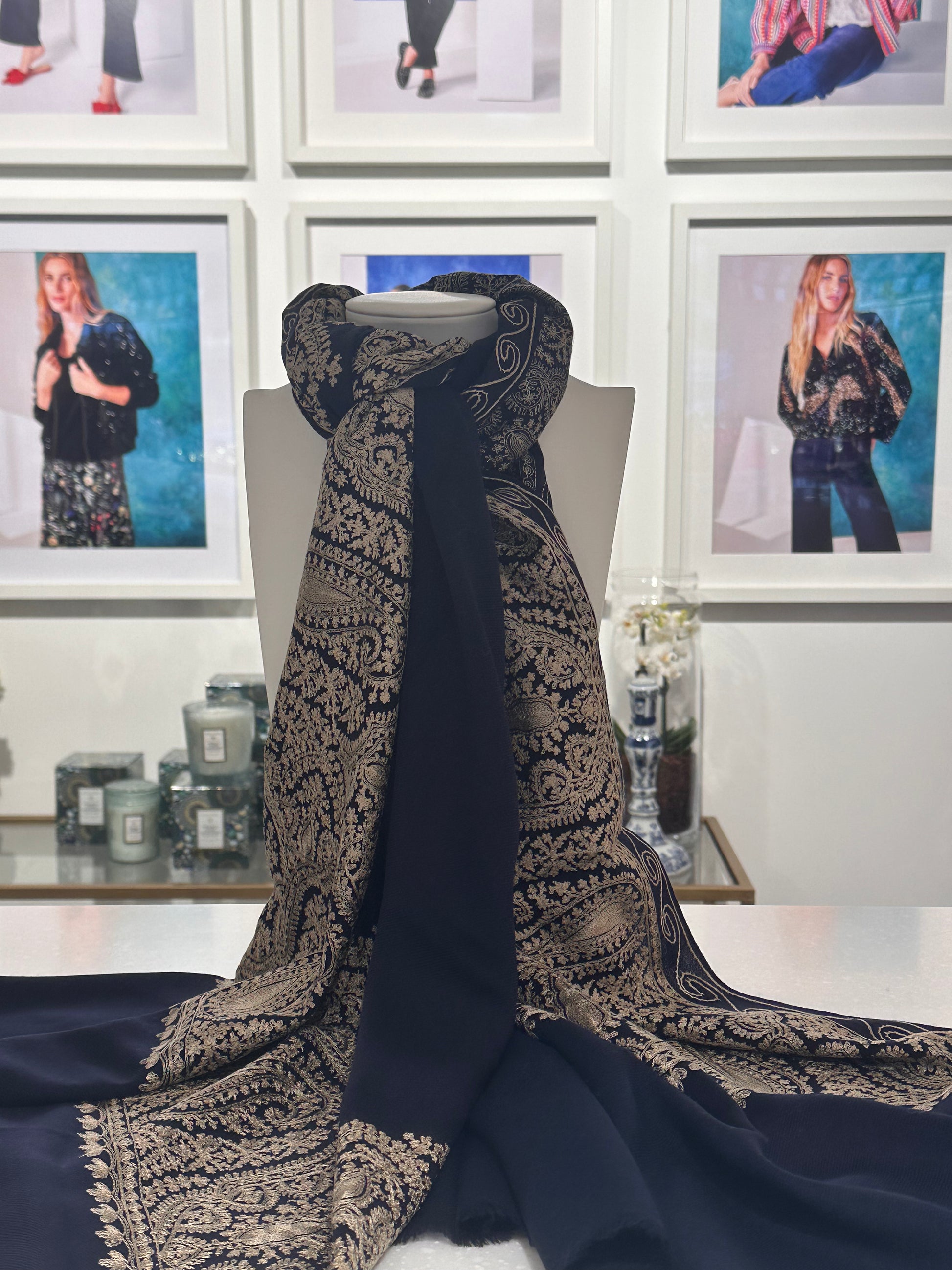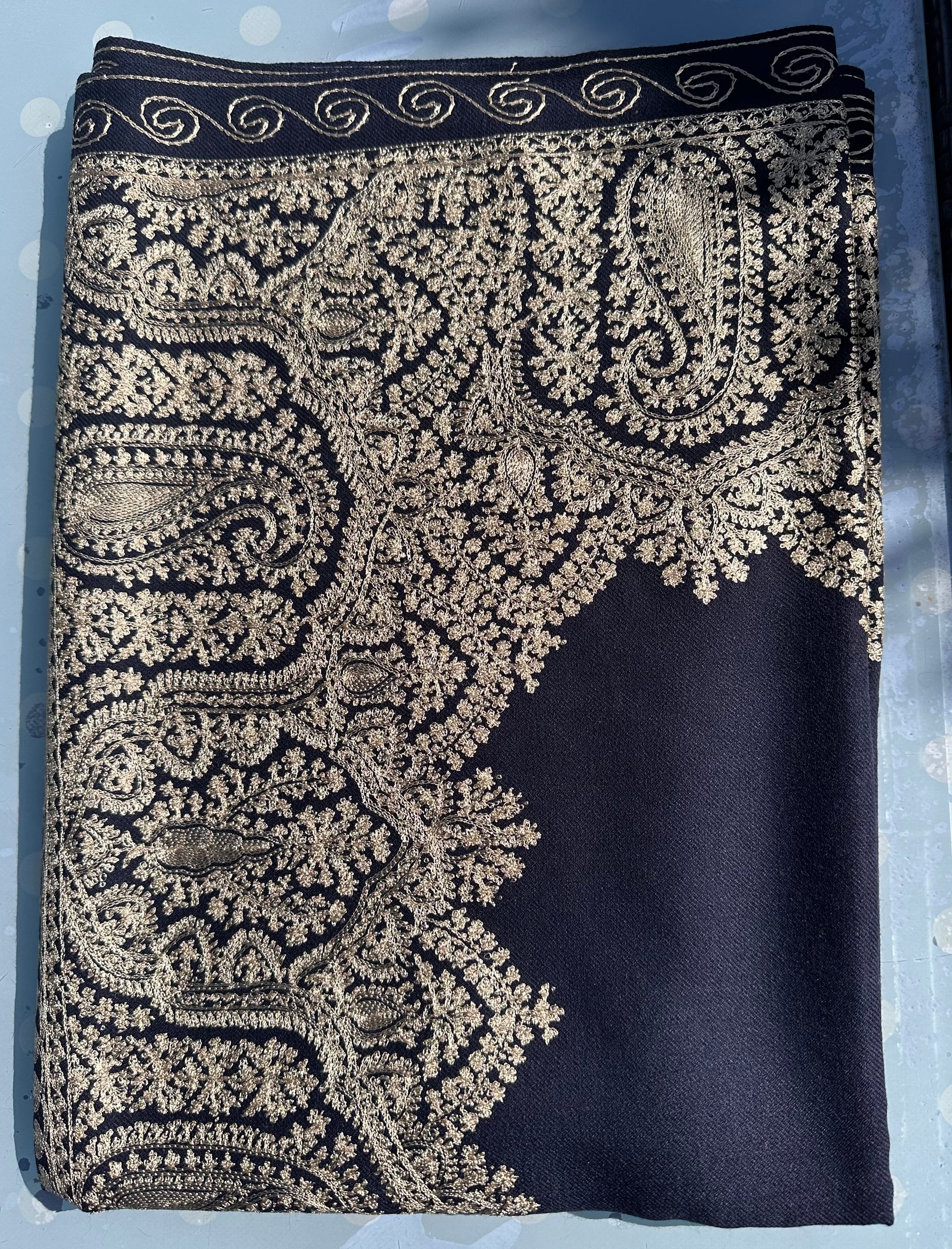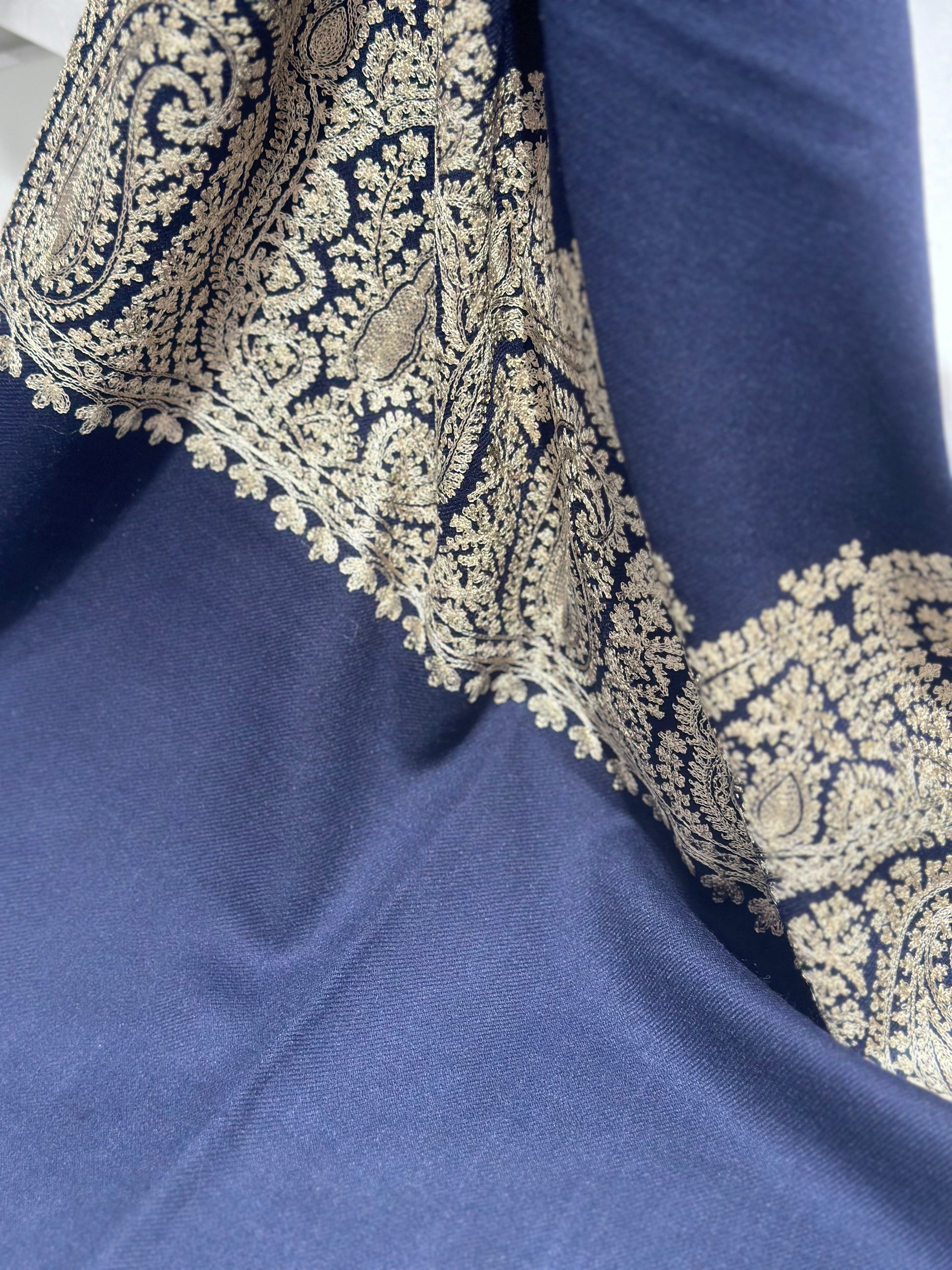 Prianka Midnight and Gold Hand Embroidered Wrap