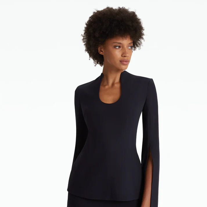 Top with slit sleeves and scooped out neck in Maritime Navy.