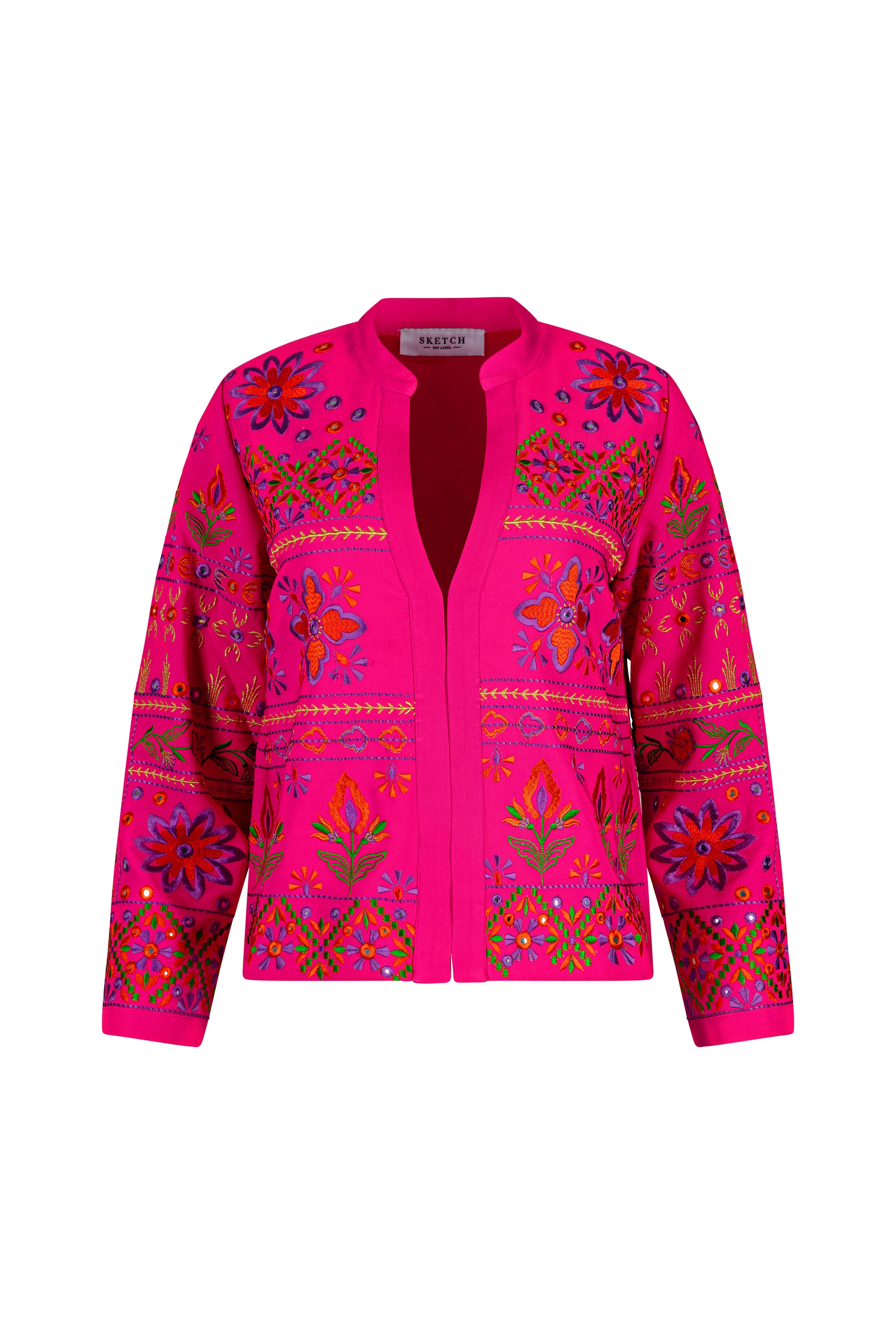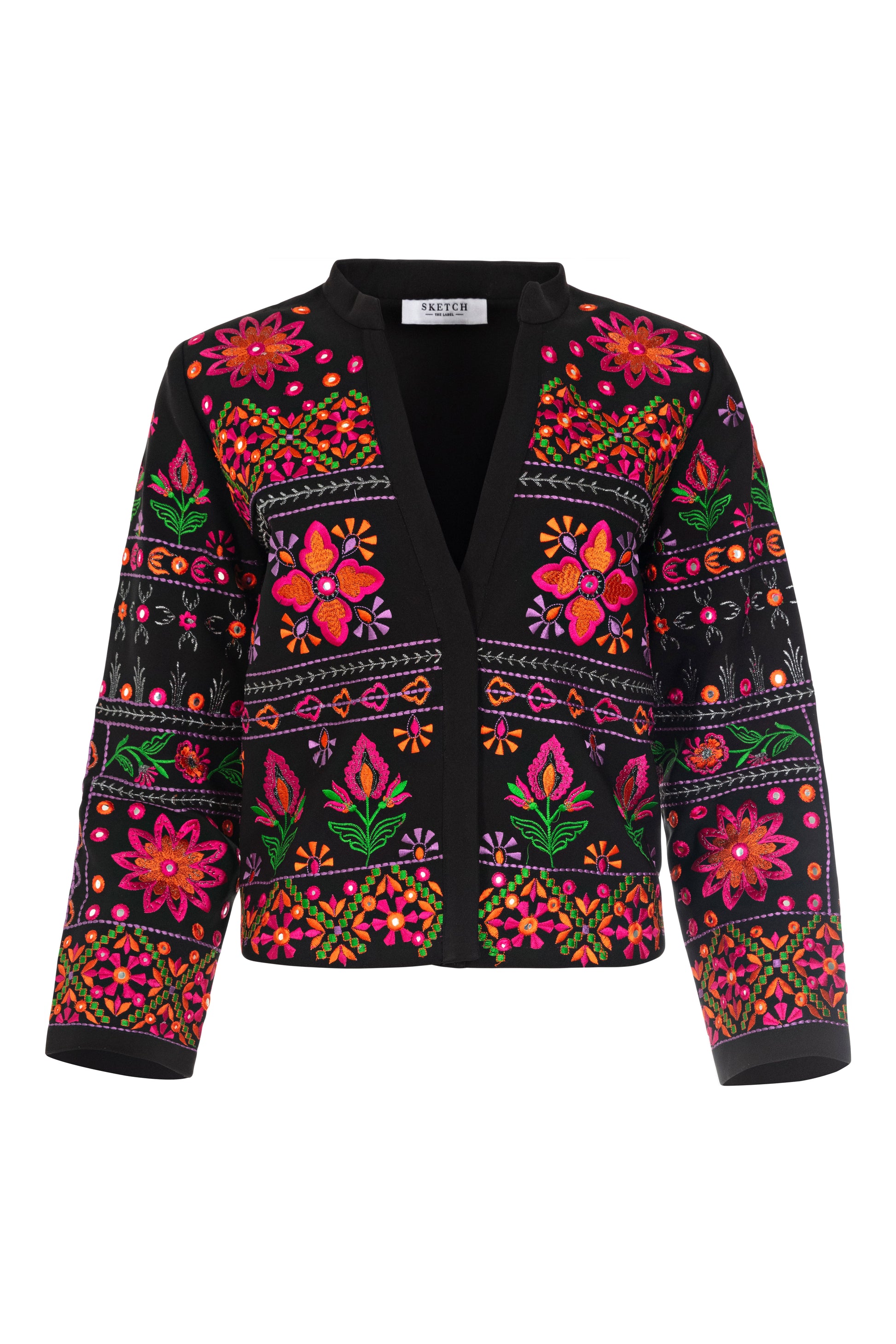 The Addison has a tailored silhouette with fitted shoulders and long sleeves. This piece features threadwork embroidery lovingly applied with delicate attention to detail using a combination of vivid colour hues representative of our seasonal palette.