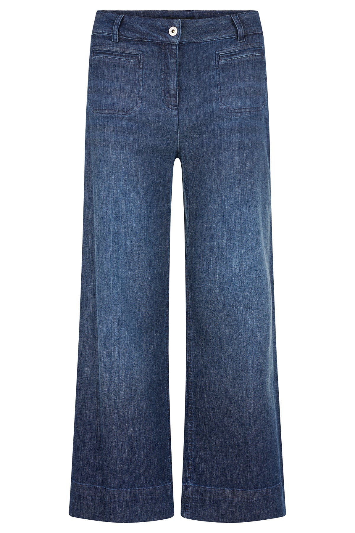 Wide-Leg Crop Flare jean - available in a deep blue denim – sculpting and flattering on all body types.