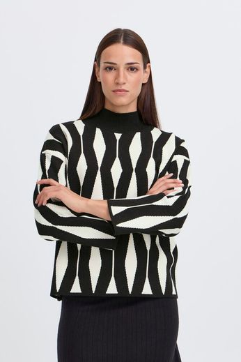 A bold update to a classic knit. This sweater features clean vertical stripes in black and white, designed to elongate the silhouette and add graphic contrast to autumn layering.