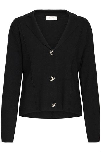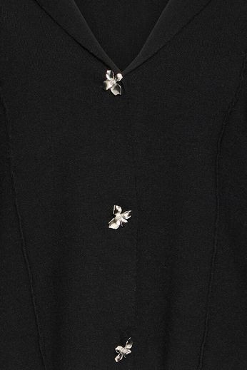 A tailored look with a soft, structured feel. This black knit blazer is cut in a flattering V-neck silhouette and finished with polished silver-tone buttons for a clean, elevated edge.