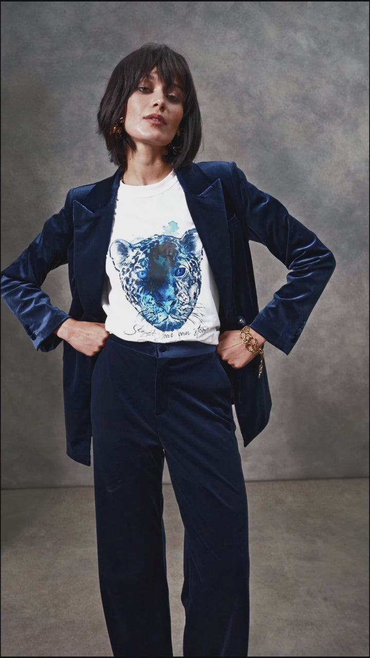 Pair with The Olga for a monochromatic velvet power set, or wear solo with a crisp shirt, soft knit, or statement top—The Vivienne is designed to move with you, and to make an impression wherever you go.