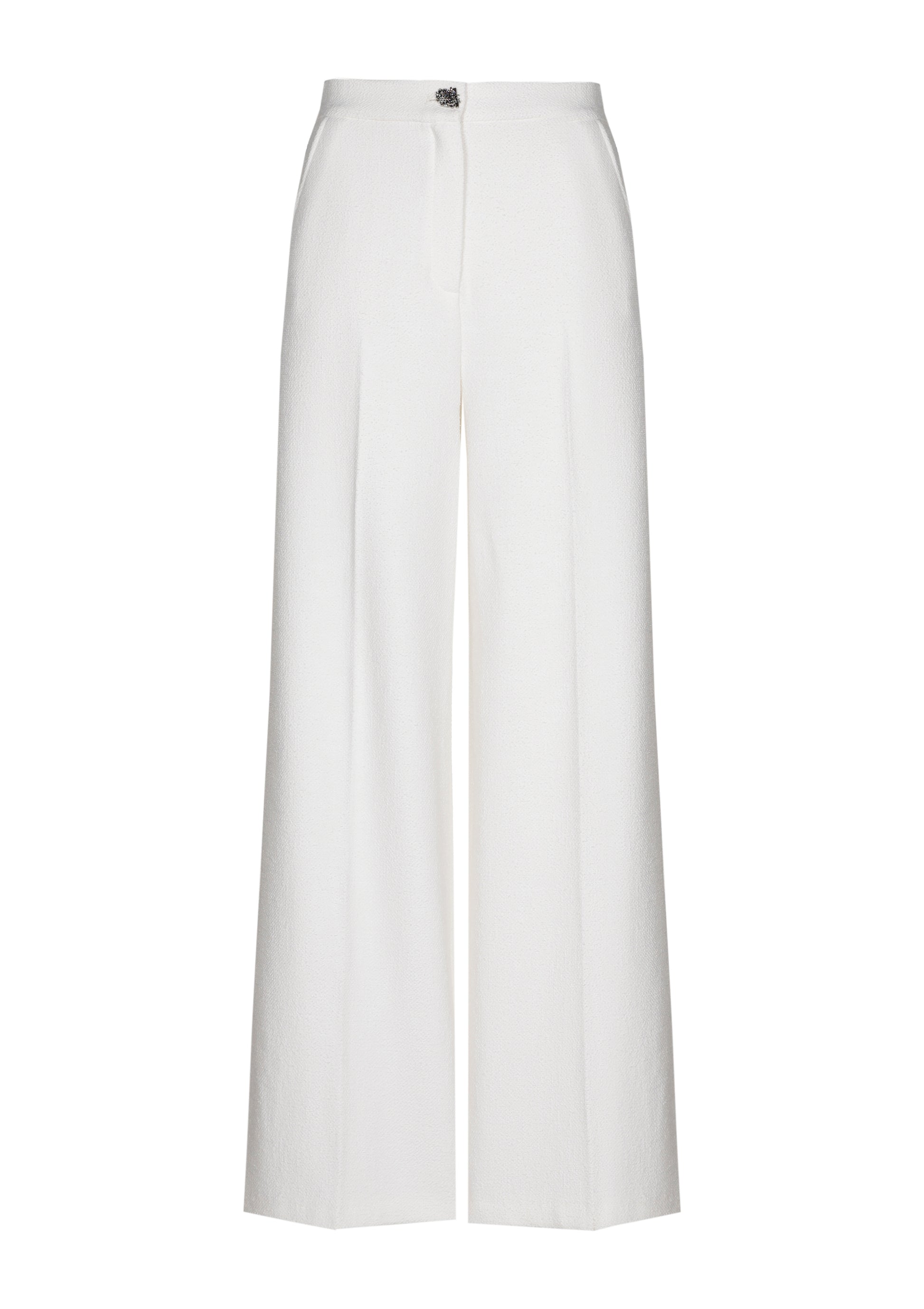This winter white co-ord reimagines the tracksuit with elevated elegance. Cut in plush bouclé tweed and finished with refined platinum hardware, it blends relaxed structure with a touch of couture polish. Designed for the woman who moves with confidence and style, even off-duty.